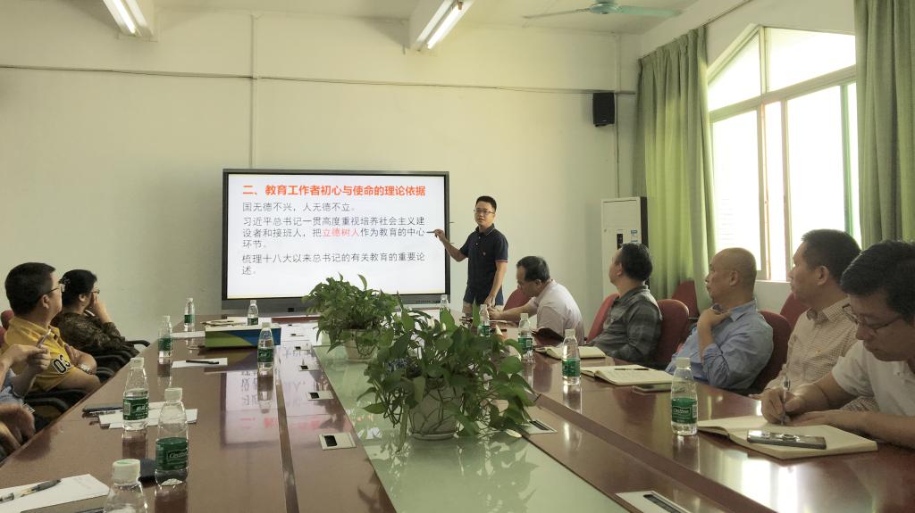 副校长潘自勉同志对《守教育报国初心,担立德树人使命》作了点评。他高度肯定了曾里鹏同志的党课:一是紧扣“不忘初心、牢记使命”主题;二是逻辑结构清晰,基于大量数据及文献,详尽分析教育工作者的初心使命;三是内容层次分明、循序渐进、流畅明晰。支部书记彭湘凯同志对《习近平的网络安全观》作了点评。彭湘凯同志认为,劳信超同志的党课:一是主题与业务工作紧密切合,主题切入恰当;二是要提高网络安全意识,网络安全就在身边,与大家工作生活息息相关;三要提高政治站位,注意正确的舆论价值导向。