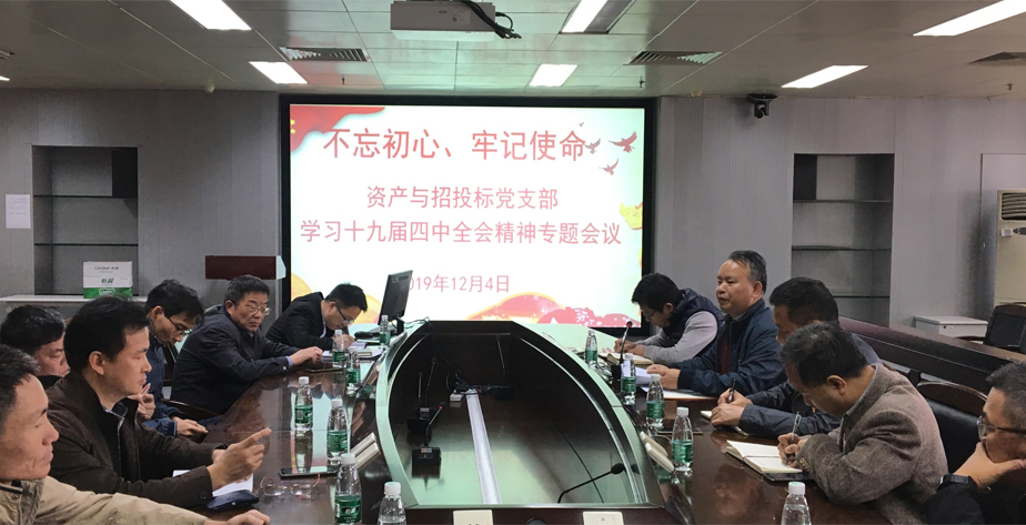 为了进一步强化“不忘初心、牢记使命”主题教育的成效,提高党员政治站位,明确坚持和完善中国特色社会主义制度、推进国家治理体系和治理能力现代化的重大意义和总体要求,12月4日下午,资产与招投标党支部全体党员集中在东校区工业中心会议室605召开学习中共中央第十九届中央委员会四中全会精神的专题会议。会议由支部书记彭湘凯同志主持。